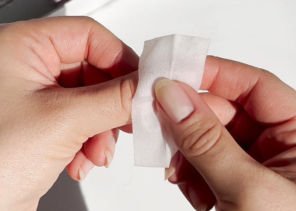 Start by thoroughly cleaning your natural nails using the alcohol pad provided. Afterward, gently file your nails to create a suitable surface for strong adhesion.